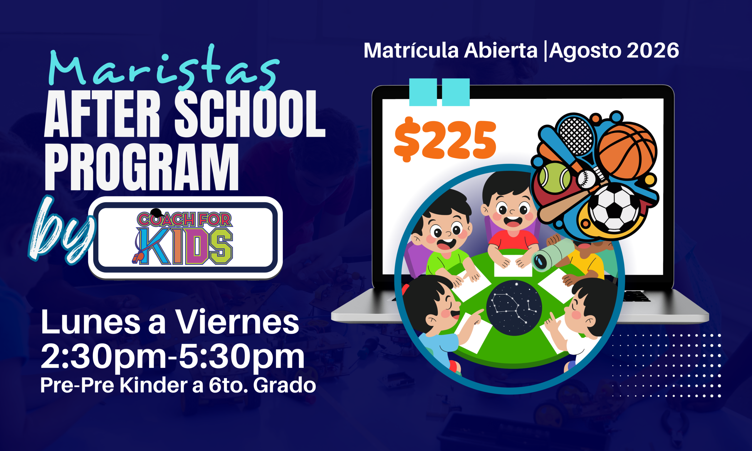 Nos complace anunciar que en Agosto 2026 Coach for Kids estará a cargo del programa de cuido y horario extendido bajo el nombre: Maristas’ After School Program by Coach for Kids.