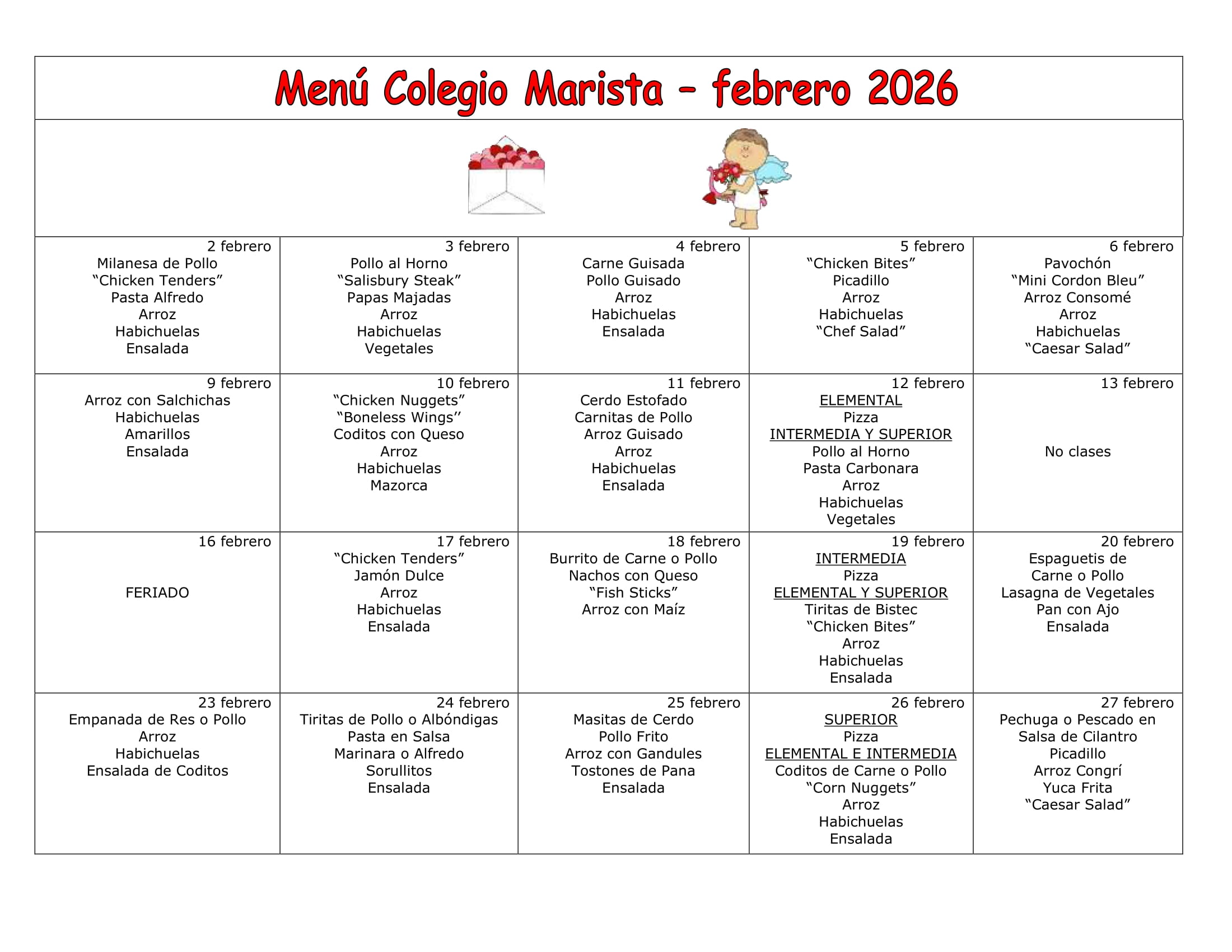 MENÚ MARISTA ESCUELA GRANDE FEBRERO